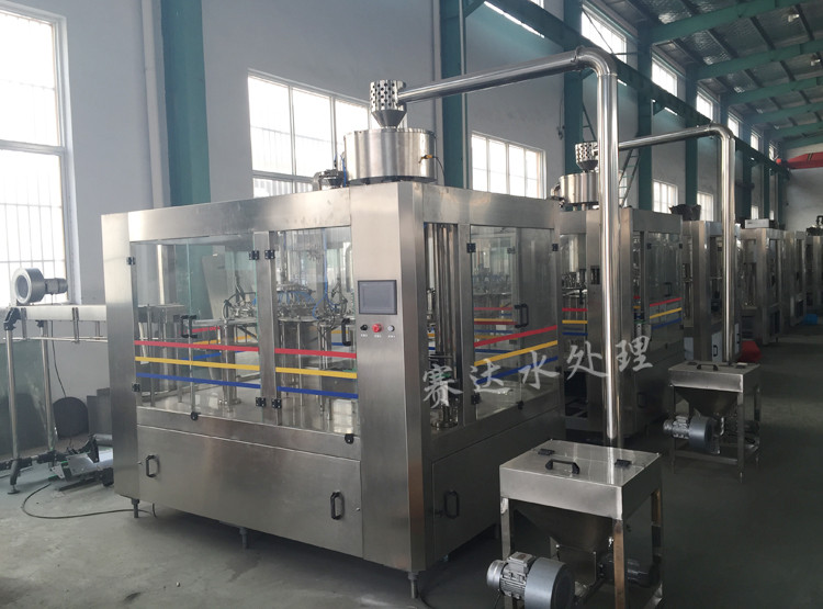 本公司生產(chǎn)的CGF18/18/6型沖洗、灌裝、封蓋機,是在引進、消化吸收國內(nèi)外同類產(chǎn)品的基礎(chǔ)上,結(jié)合了本公司多年生產(chǎn)經(jīng)驗后開發(fā)的新產(chǎn)品。該機組集灌裝、封口于一體,由一個傳動電機傳動。具有自動化程度高、結(jié)構(gòu)緊湊、外形美觀、操作維護方便、安全可靠、生產(chǎn)能力連續(xù)可調(diào)等優(yōu)點,是目前國內(nèi)較為理想的礦泉水、純凈水、飲料灌裝生產(chǎn)設(shè)備。